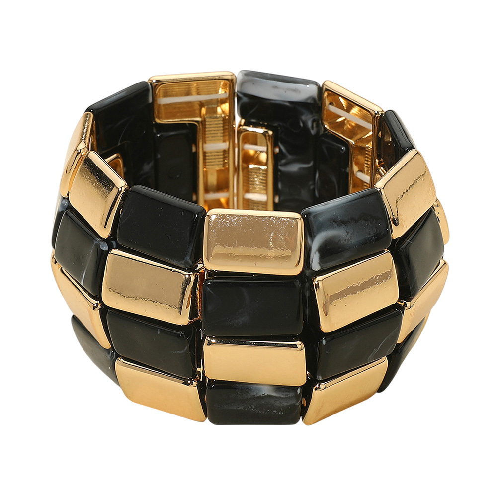 Bold Geometric Resin Metal Beaded Wide Stretch Bracelet