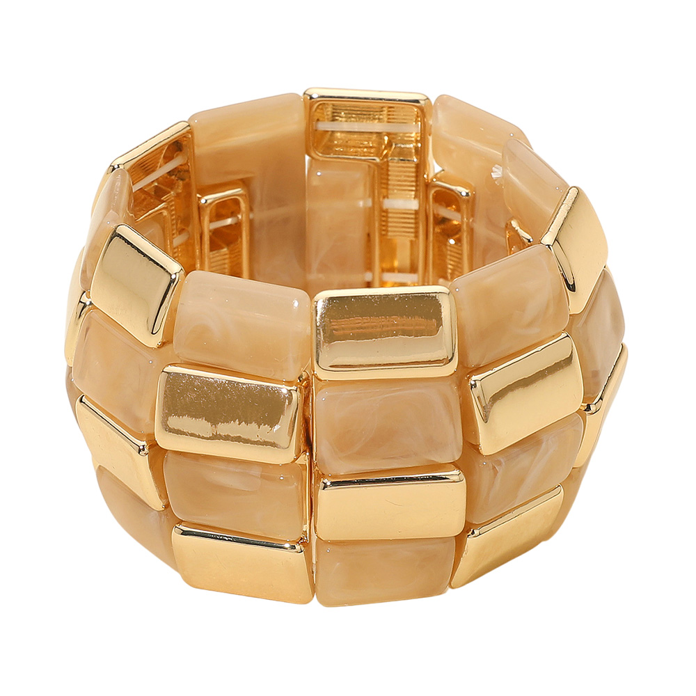 Bold Geometric Resin Metal Beaded Wide Stretch Bracelet