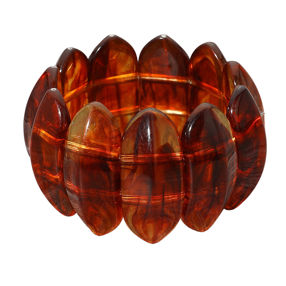 • Elevate your look with this marbled stretch bracelet featuring pointed oval panels for a chic and contemporary vibe. Its bold design and flexible fit make it perfect for stacking or wearing solo as a statement piece, adding versatile style to both casual and dressy outfits.