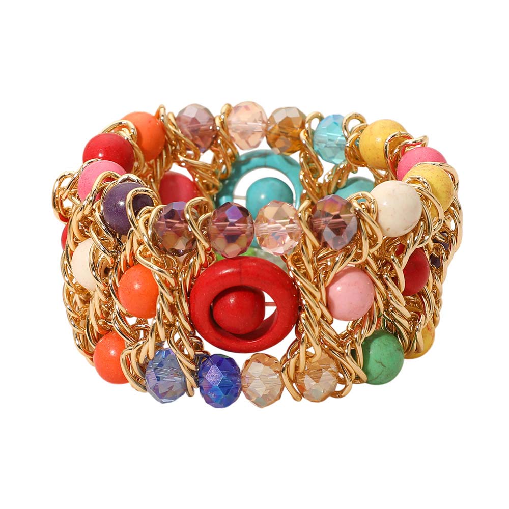 Bold Multi Strand Beaded Stretch Bracelet