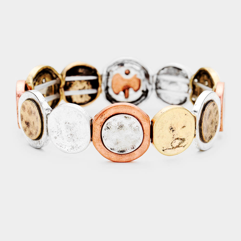 Burnished Metal Round Stretch Bracelet