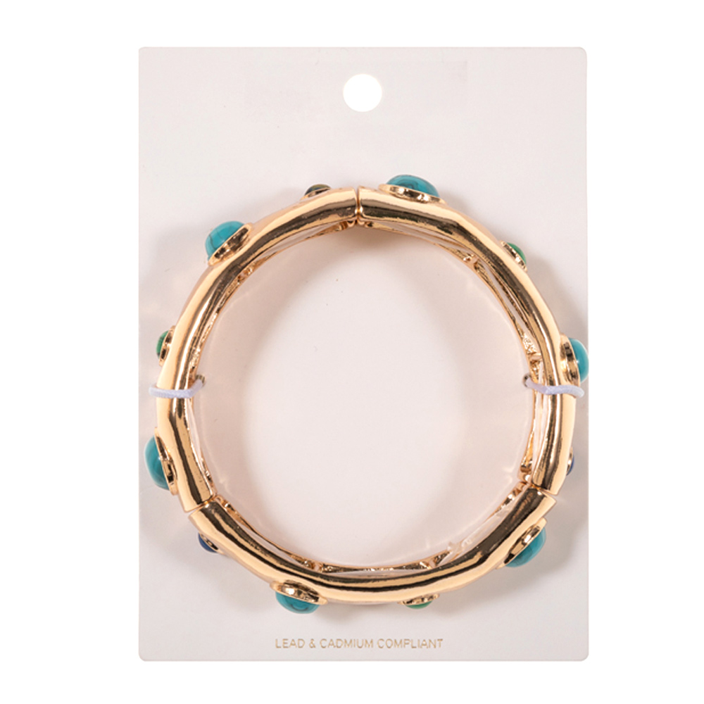 Cabochon Accent Textured Metal Stretch Bracelet Cabochon Accent Textured Metal Stretch Bracelet Cabochon Accent Textured Metal Stretch Bracelet