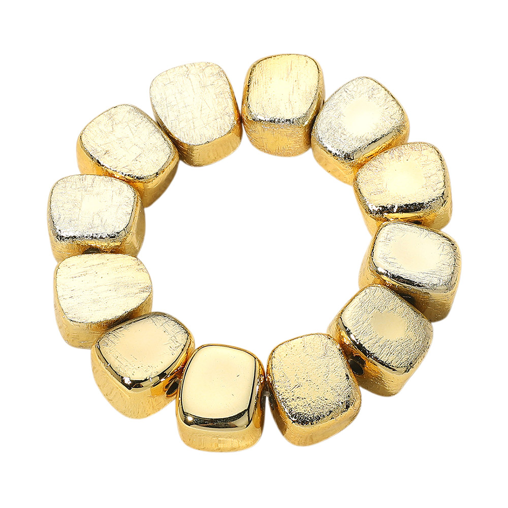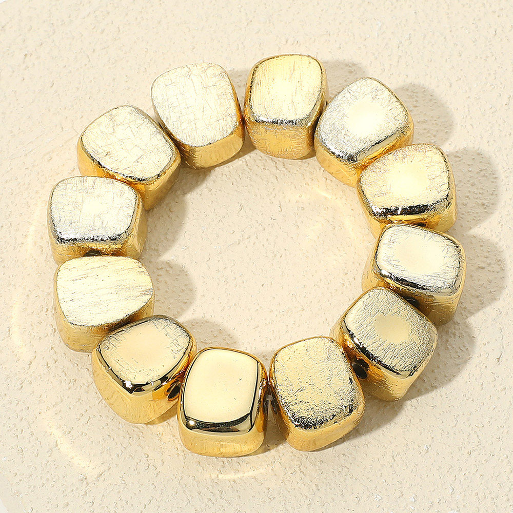 Details • Size : 0.75" H • Stretchable • Elevate your style with this chunky stretch bracelet featuring bold, square metallic beads in a textured finish. A modern and versatile piece perfect for casual or statement wear. Easy to slip on for instant impact. • Lead and Nickel Compliant