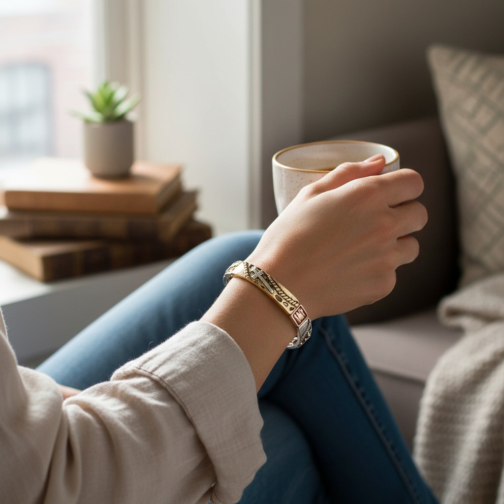 NURSES BLESSING Message Engraved Triple Open Nurse Charms Bangle Bracelet