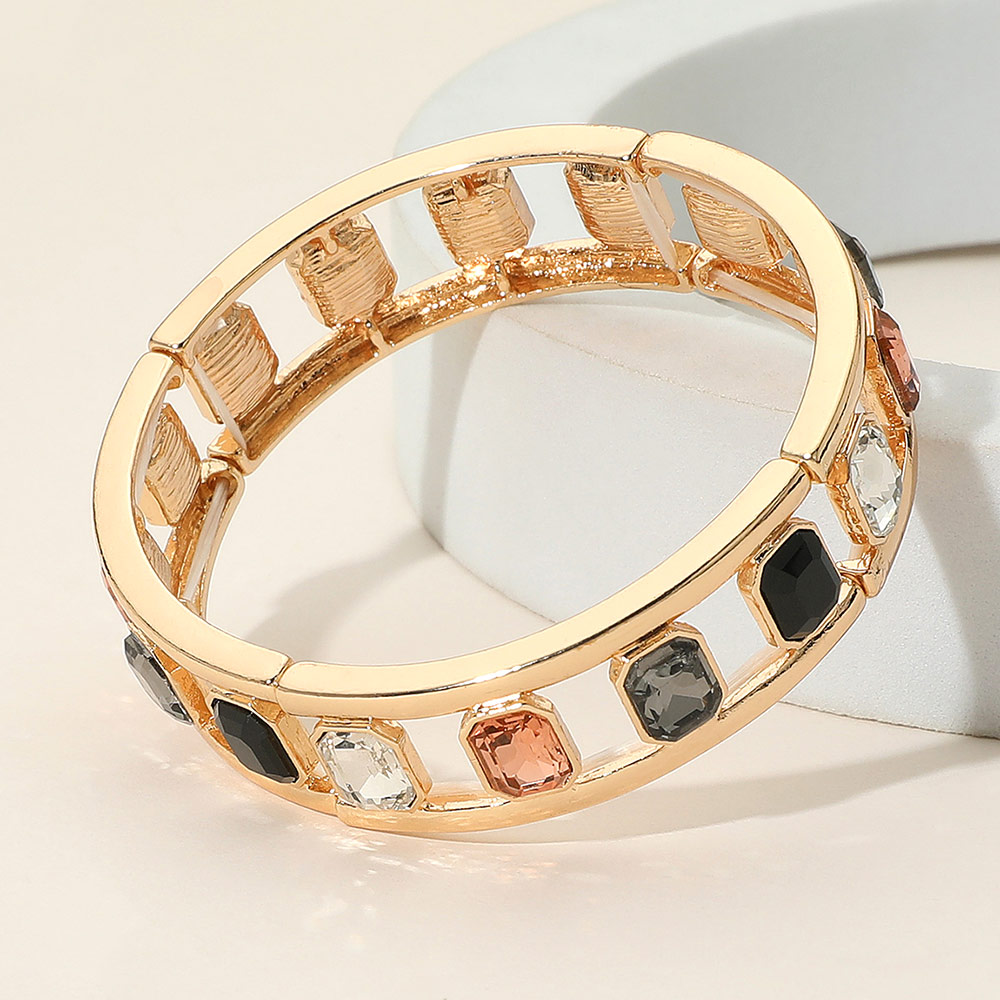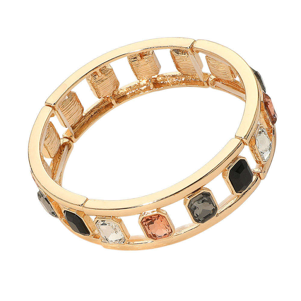Emerald Cut Stone Embellished Open Frame Stretch Bracelet