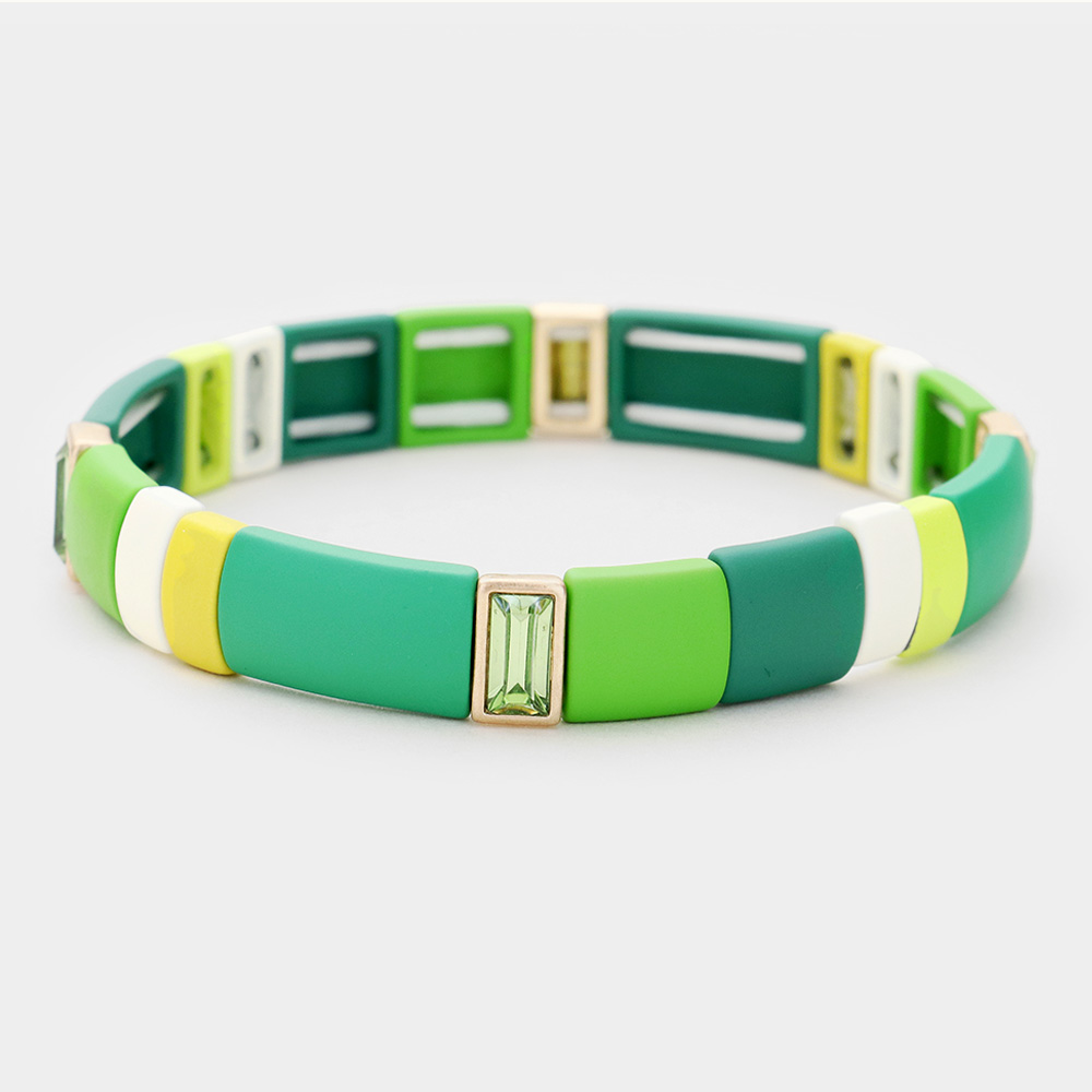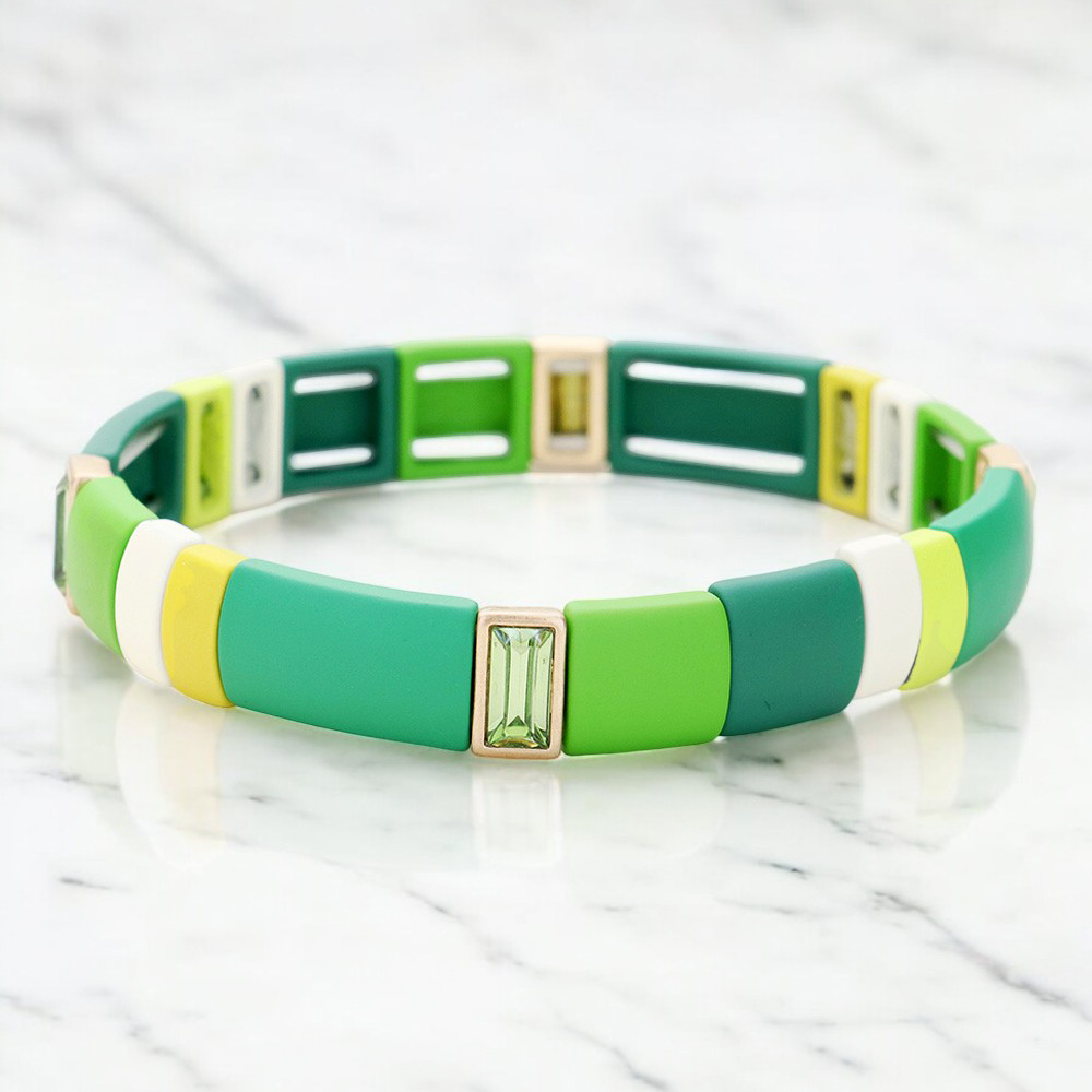 Glass Crystal Lego Color Block Stretch Bracelet