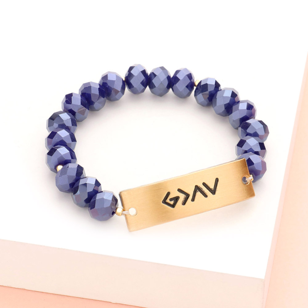 God is Greater Than The Highs And The Lows Metal Bar Faceted Beaded Stretch Bracelet