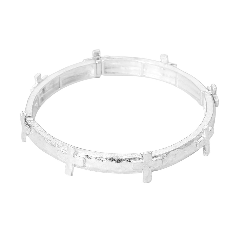 Details • Size : 0.5" H, 2.5" D • Stretchable • Express your style with this elegant stretch bracelet featuring subtle cross accents for a touch of meaning and simplicity. Designed for comfort and versatility, it pairs beautifully with casual or dressy looks, making it a timeless accessory for any jewelry collection. • Lead and Nickel Compliant