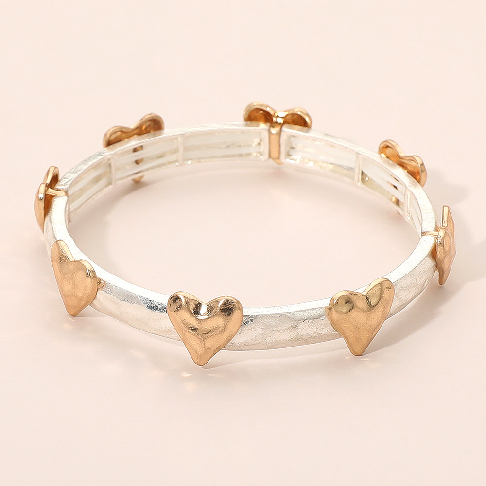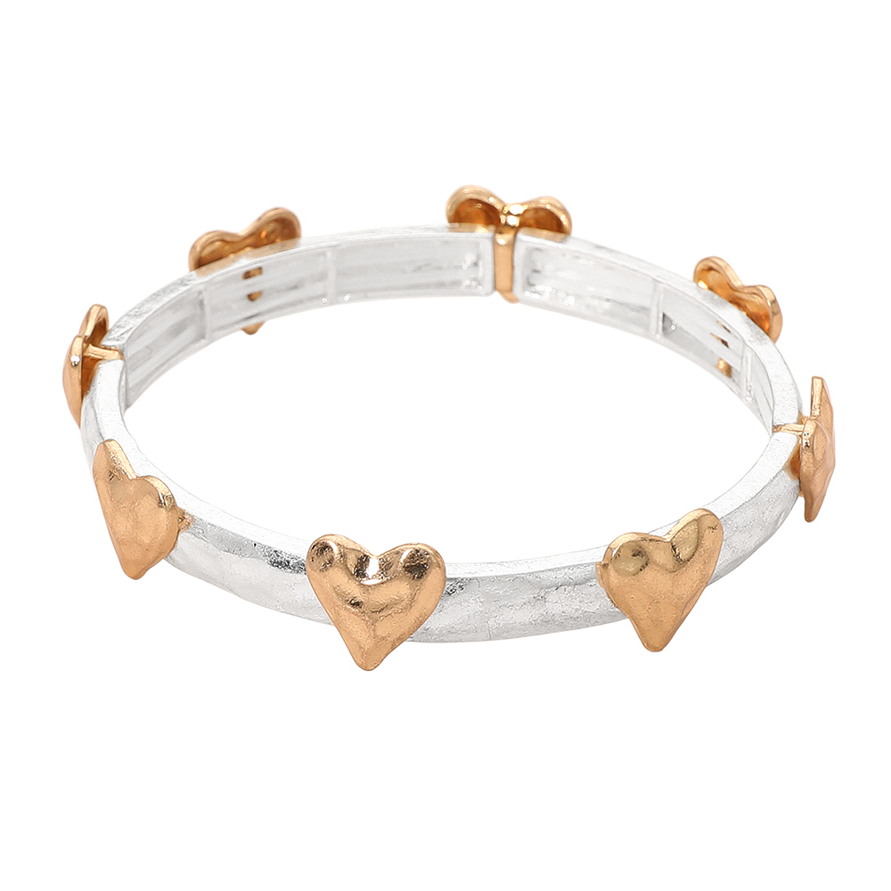 Hammered Brushed Metal Heart Accent Stretch Bracelet