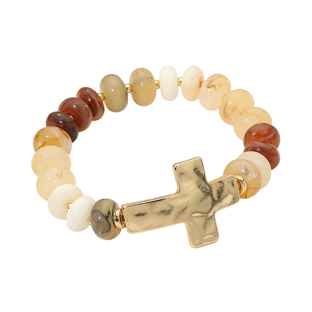 Details • Size : 1" H • Stretchable • Colorful beaded stretch bracelet featuring glossy round beads and a bold cross charm centerpiece. Comfortable and stylish, this bracelet makes a meaningful accessory for everyday wear or as a thoughtful gift. • Lead and Nickel Compliant