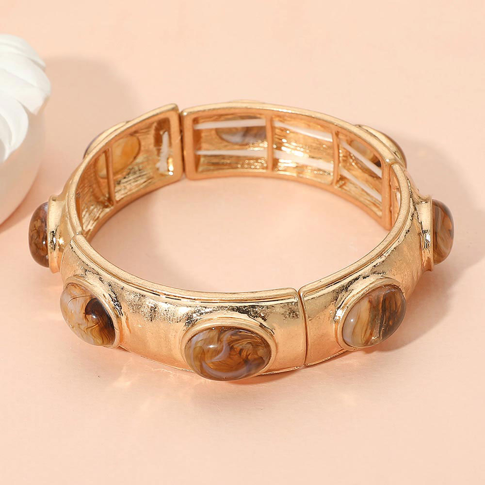 Marbled Oval Stone Accent Hammered Metal Beaded Stretch Bracelet