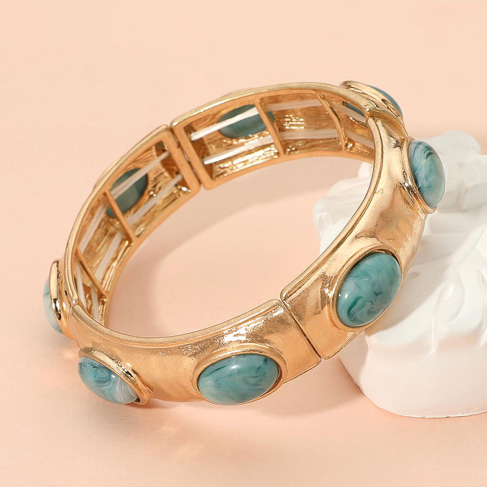 Marbled Oval Stone Accent Hammered Metal Beaded Stretch Bracelet