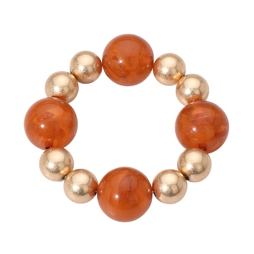 Metal Ball Bold Marbled Resin Ball Beaded Stretch Bracelet