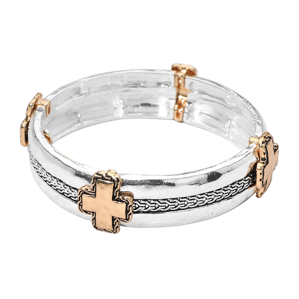 Metal Cross Accent Textured Stretch Bracelet Metal Cross Accent Textured Stretch Bracelet