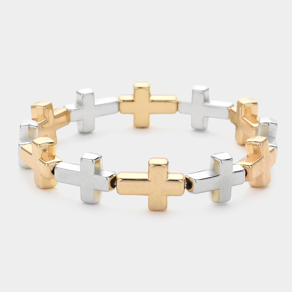 • Stylish linked cross stretch bracelet designed for effortless layering or solo wear. Features a comfortable slip-on fit with a timeless symbolic look that works for casual, dressy, or gift occasions. A versatile jewelry essential ideal for boutiques, faith-inspired collections, and everyday accessory assortments.