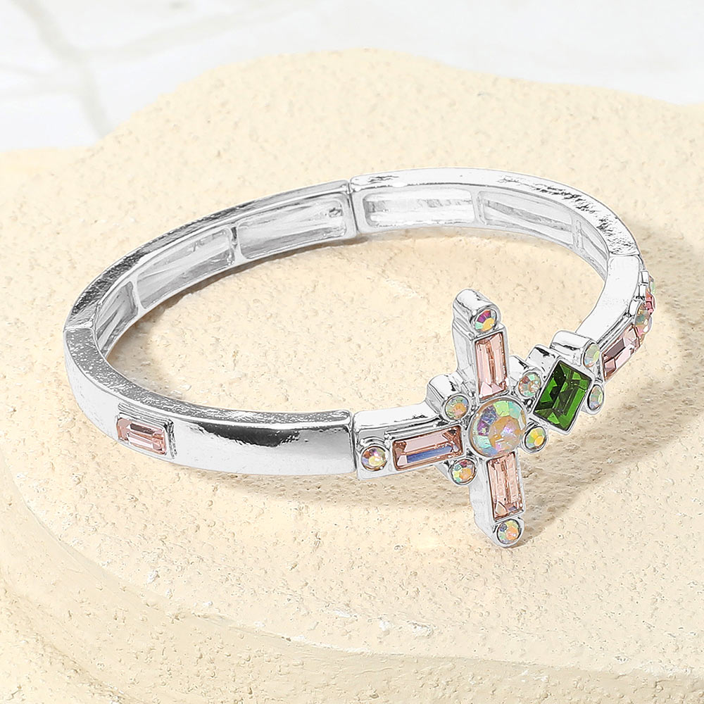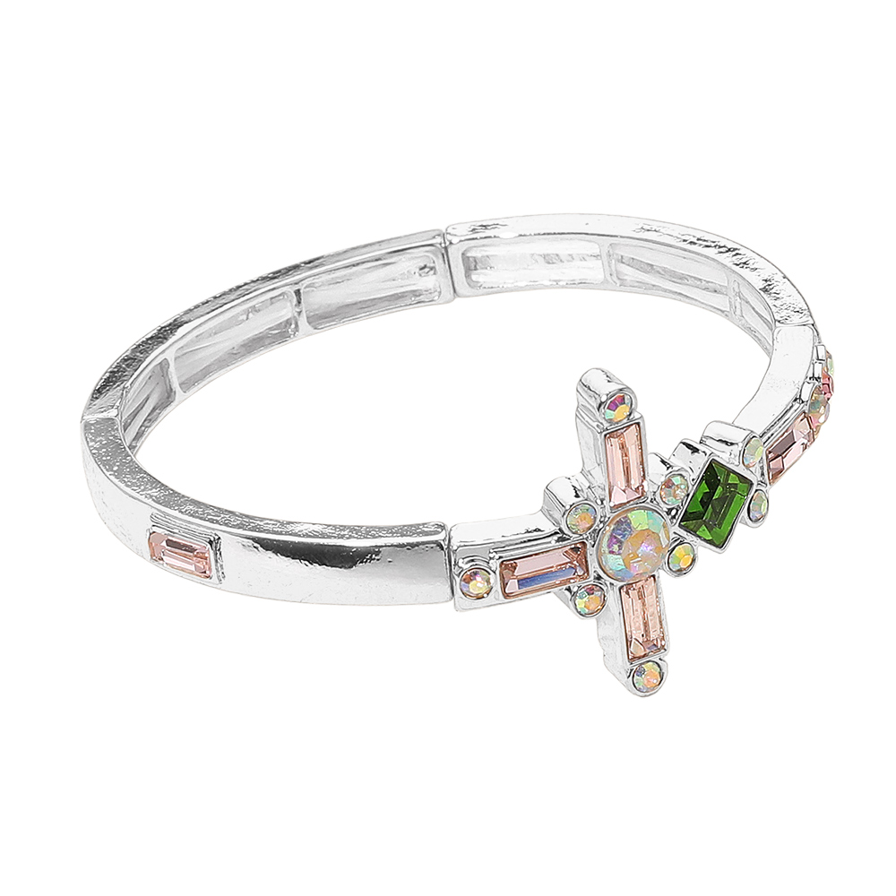Mixed Stone Cross Accent Stretch Bracelet Mixed Stone Cross Accent Stretch Bracelet Mixed Stone Cross Accent Stretch Bracelet