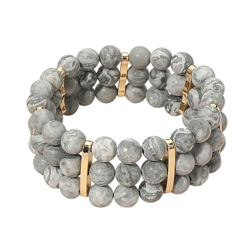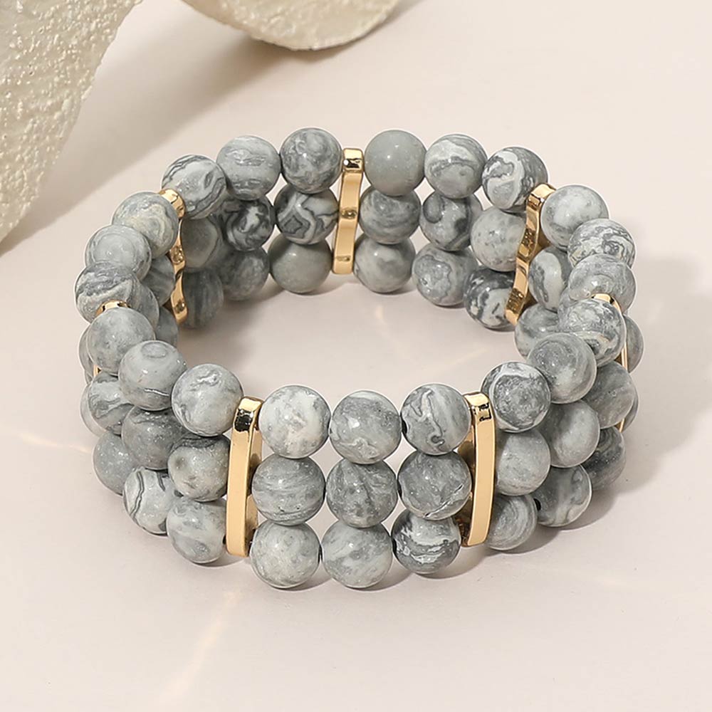 • Stylish multi row stretch bracelet designed with round beads and sleek spacer accents for a balanced, layered look. Easy slip-on fit offers comfort and flexibility for everyday wear. A versatile accessory ideal for casual outfits, boutique collections, stacking styles, and giftable fashion jewelry displays.