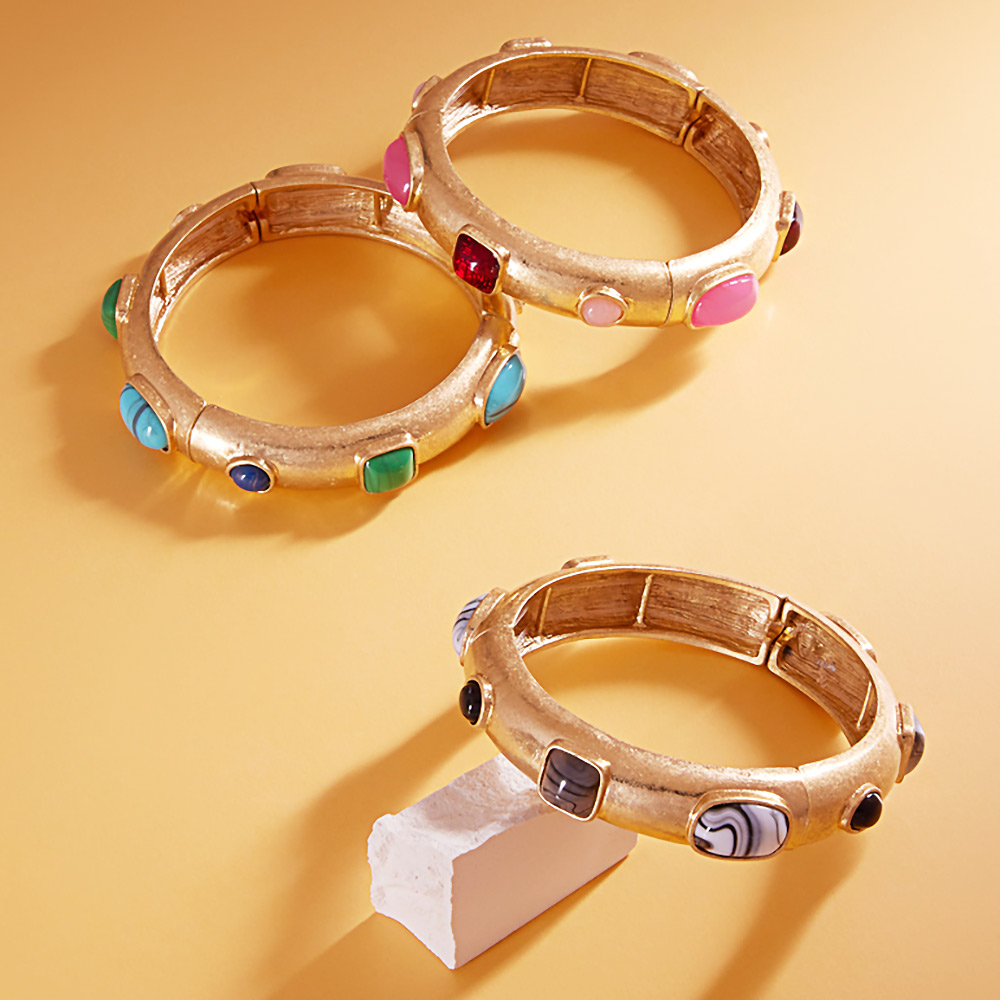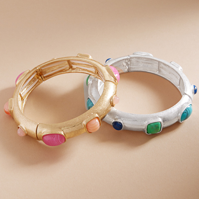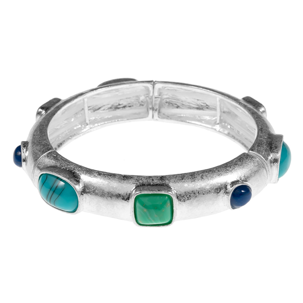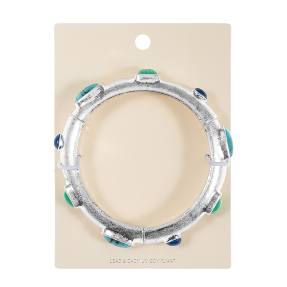 Natural Stone Pointed Brushed Metal Stretch Bracelet