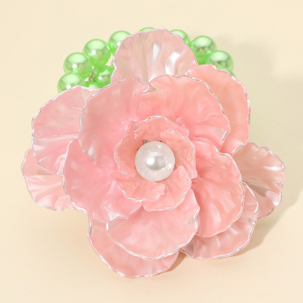 • Elegant stretch bracelet featuring a bold floral centerpiece with pearl detail and green beaded band. Designed for comfort and versatility, this statement accessory brings a touch of sophistication and charm to any outfit.