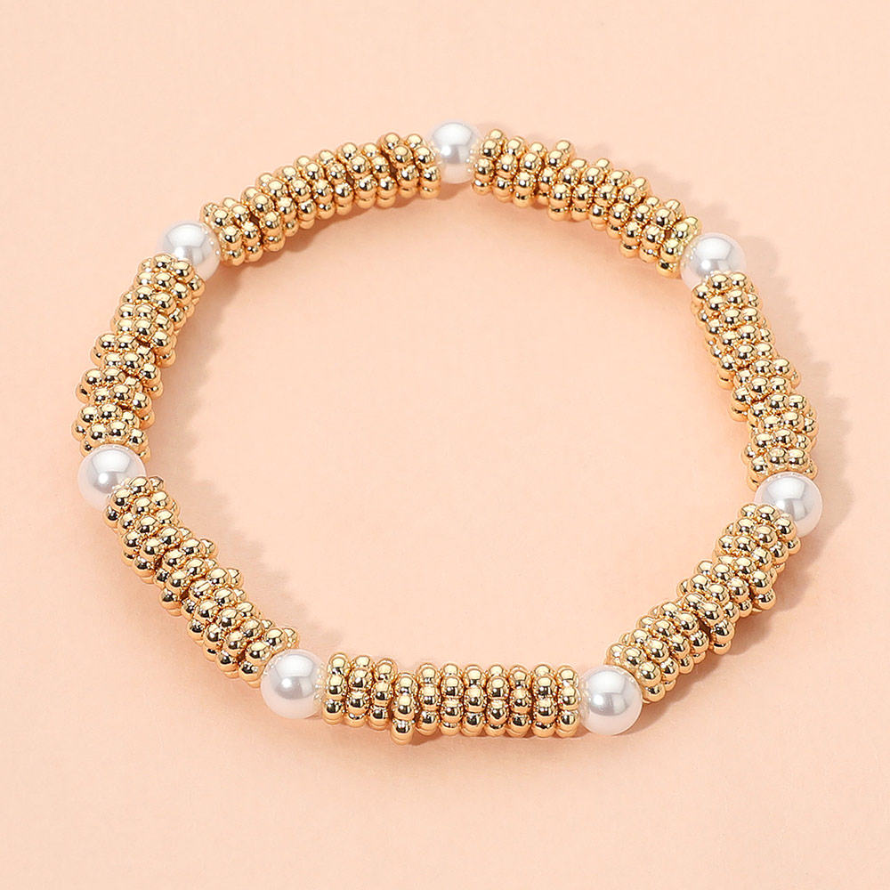 Pearl Accent Textured Metal Beaded Stretch Bracelet