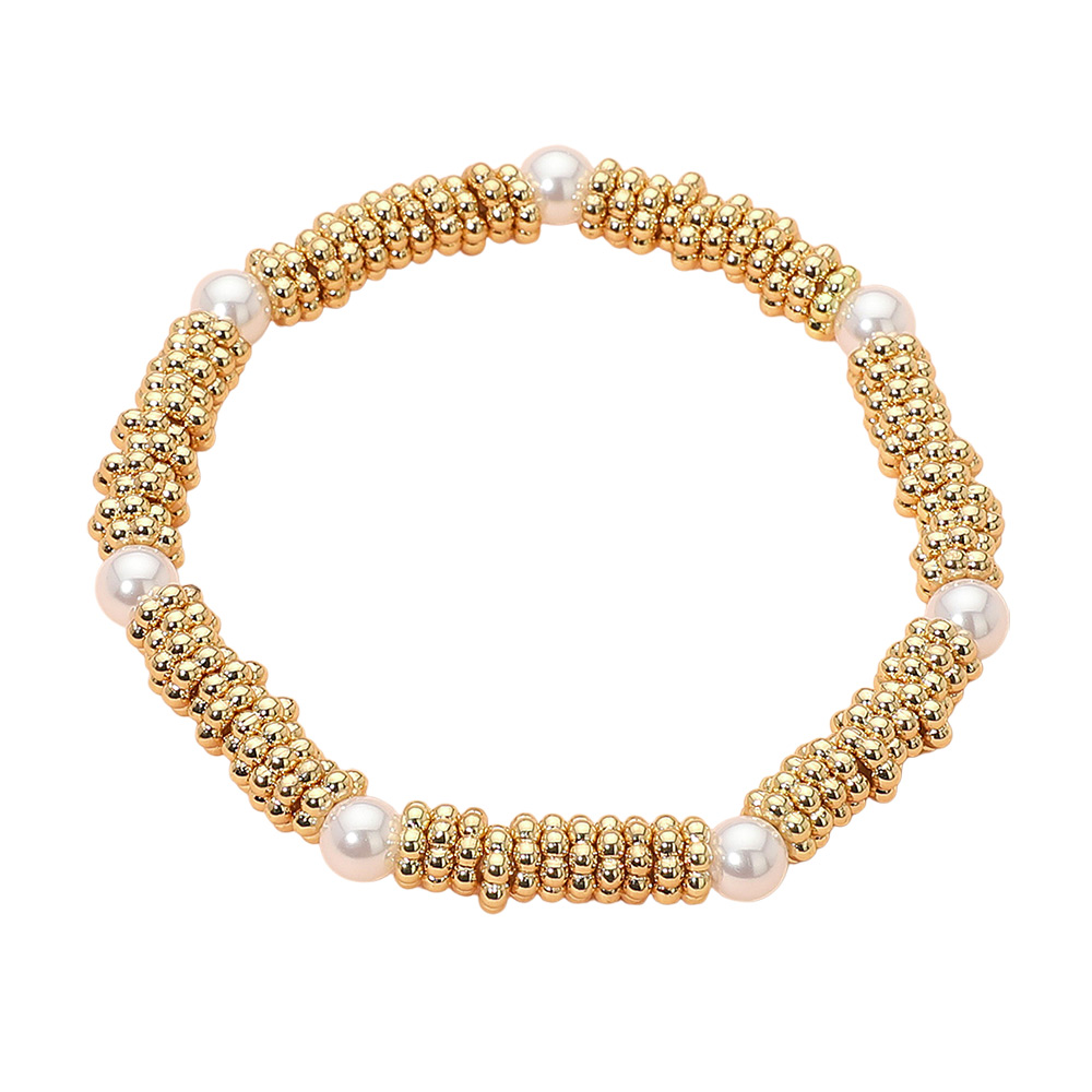 Pearl Accent Textured Metal Beaded Stretch Bracelet Pearl Accent Textured Metal Beaded Stretch Bracelet