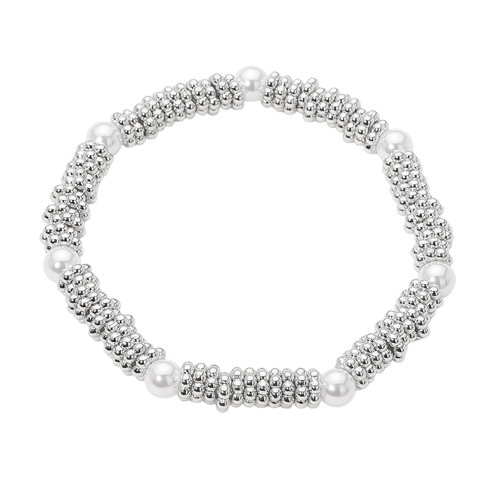 Pearl Accent Textured Metal Beaded Stretch Bracelet