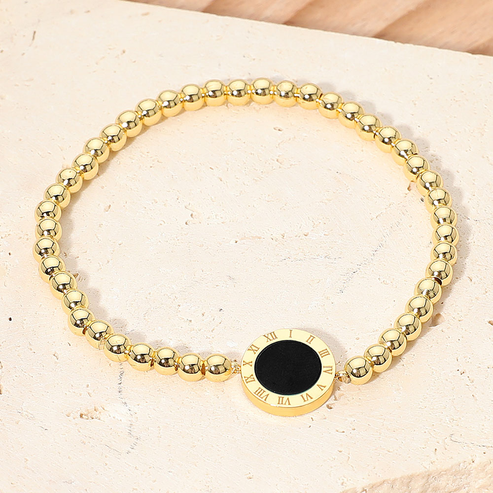 Roman Numeral Round Disc Pointed Stainless Steel Ball Beaded Stretch Bracelet Roman Numeral Round Disc Pointed Stainless Steel Ball Beaded Stretch Bracelet