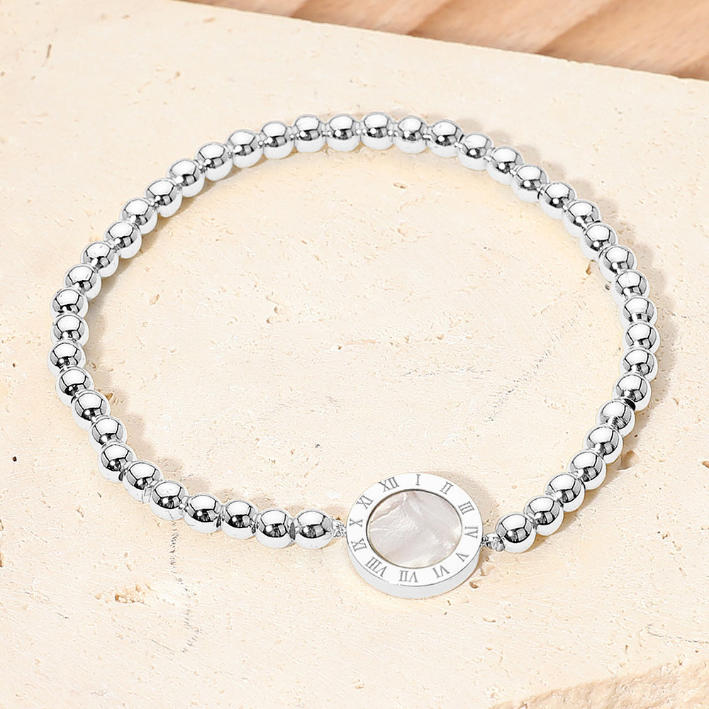 Roman Numeral Round Disc Pointed Stainless Steel Ball Beaded Stretch Bracelet Roman Numeral Round Disc Pointed Stainless Steel Ball Beaded Stretch Bracelet
