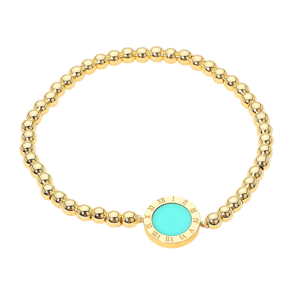 Roman Numeral Round Disc Pointed Stainless Steel Ball Beaded Stretch Bracelet Roman Numeral Round Disc Pointed Stainless Steel Ball Beaded Stretch Bracelet