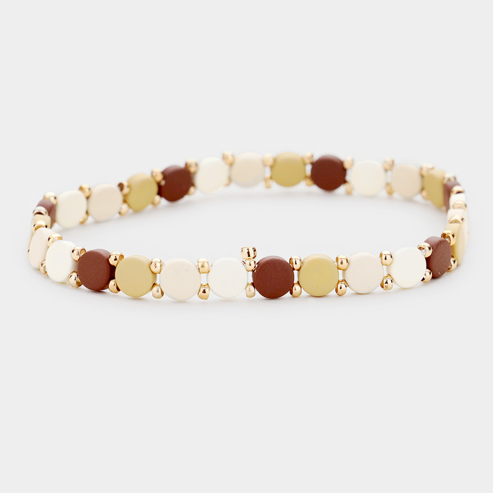 Square Faceted Gemstone Frame Beaded Stretch Bracelet
