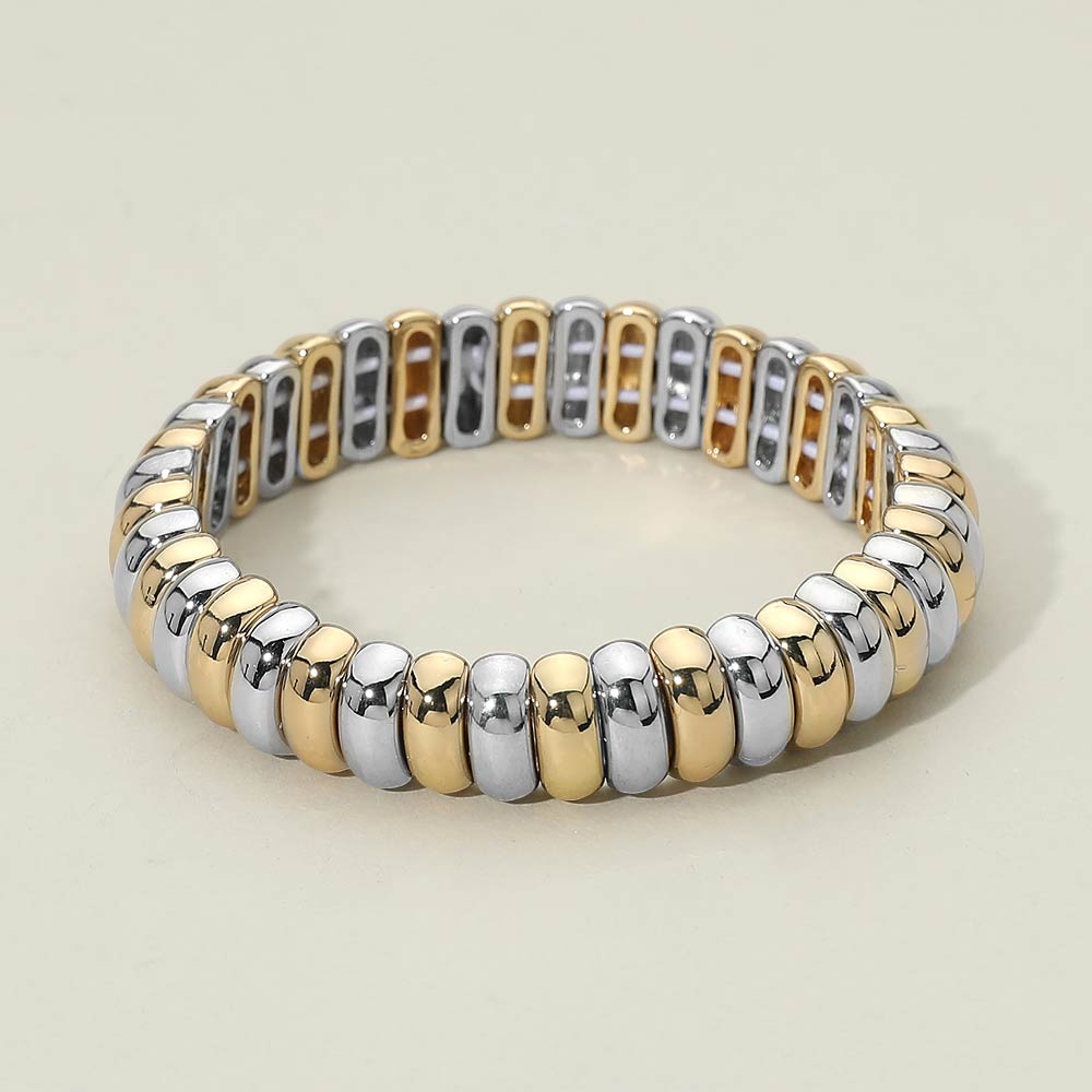 • This classic stretch link bracelet showcases smooth, rounded links arranged in a clean, uniform design. The flexible stretch construction allows for easy on-and-off wear while delivering a polished, timeless look. A versatile accessory suited for everyday styling, layering, boutique displays, and gift-ready collections.