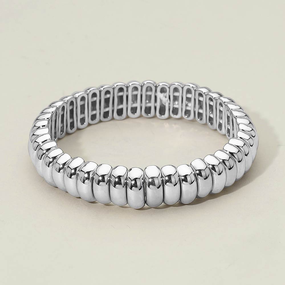Details • Size : 0.5" H • Stretchable • This classic stretch link bracelet showcases smooth, rounded links arranged in a clean, uniform design. The flexible stretch construction allows for easy on-and-off wear while delivering a polished, timeless look. A versatile accessory suited for everyday styling, layering, boutique displays, and gift-ready collections. • Lead and Nickel Compliant