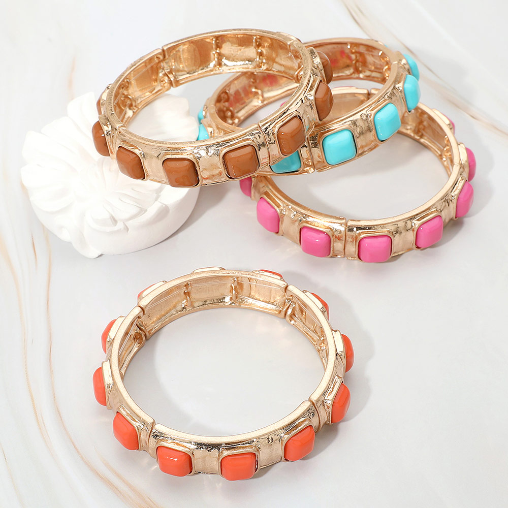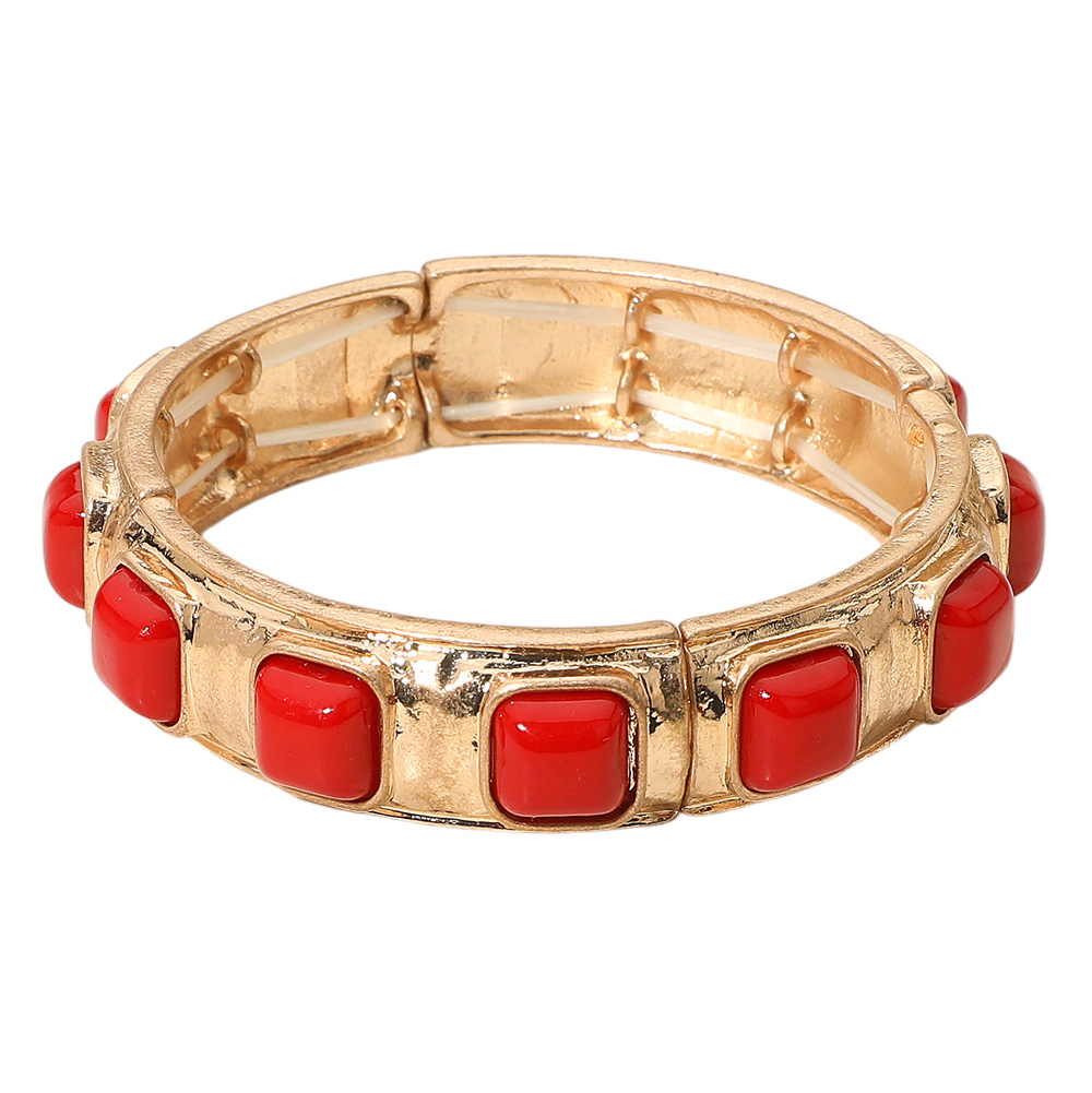 Square Bead Embellished Hammered Metal Stretch Bracelet
