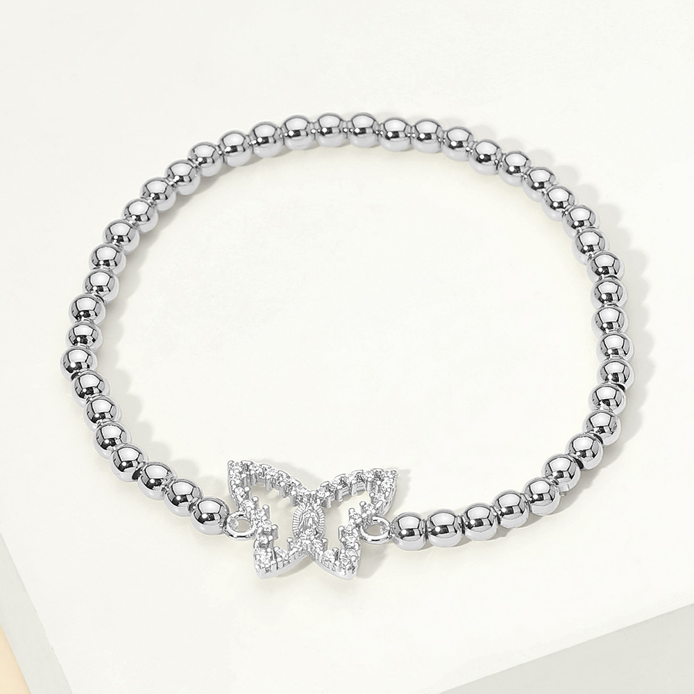 Details • Size : 0.6" H • Stretchable • This butterfly charm beaded stretch bracelet features polished round beads accented with a detailed butterfly centerpiece for a refined yet playful look. Designed with a flexible slip-on fit, it offers all-day comfort and effortless styling. Ideal for stacking or wearing alone, this bracelet adds charm-driven appeal to everyday outfits, seasonal assortments, and gift-focused accessory collections. • CZ Cubic Zirconia • Stainless Steel