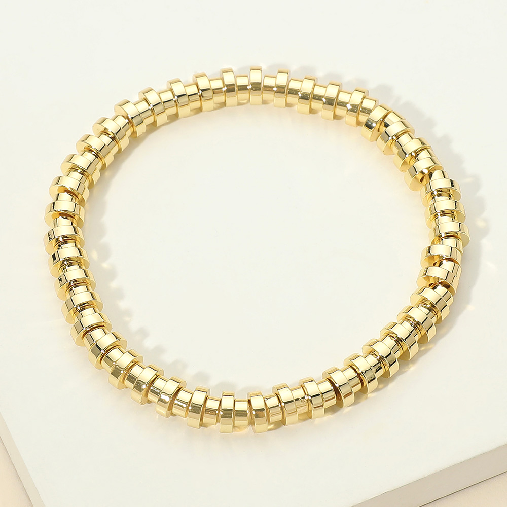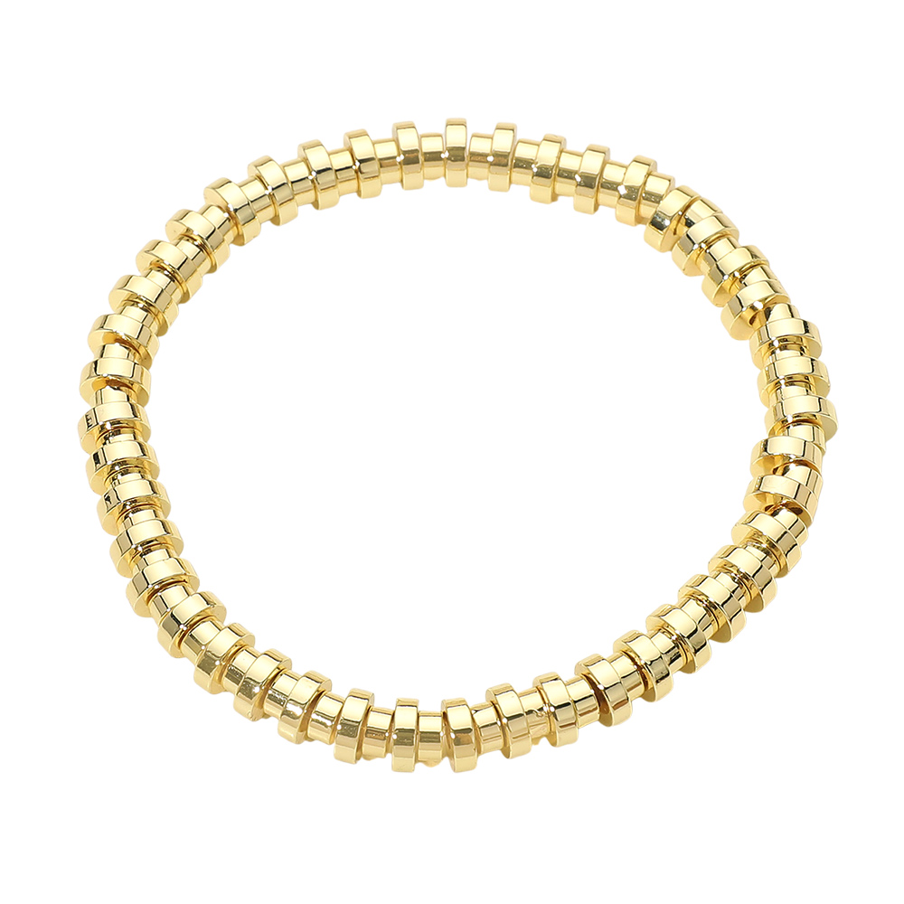 Details • Size : 0.25" H • Stretchable • This stainless steel flat disc bead stretch bracelet features sleek, evenly spaced flat beads that create a clean, modern look with effortless wear. Designed with a flexible slip-on fit, it offers everyday comfort and easy styling. Perfect for stacking or wearing solo, this bracelet complements casual and polished outfits alike, making it a versatile addition to curated accessory collections and gift-ready assortments. • Stainless Steel
