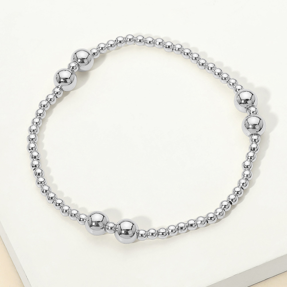 Stainless Steel Graduated Beaded Stretch Bracelet Stainless Steel Graduated Beaded Stretch Bracelet Stainless Steel Graduated Beaded Stretch Bracelet