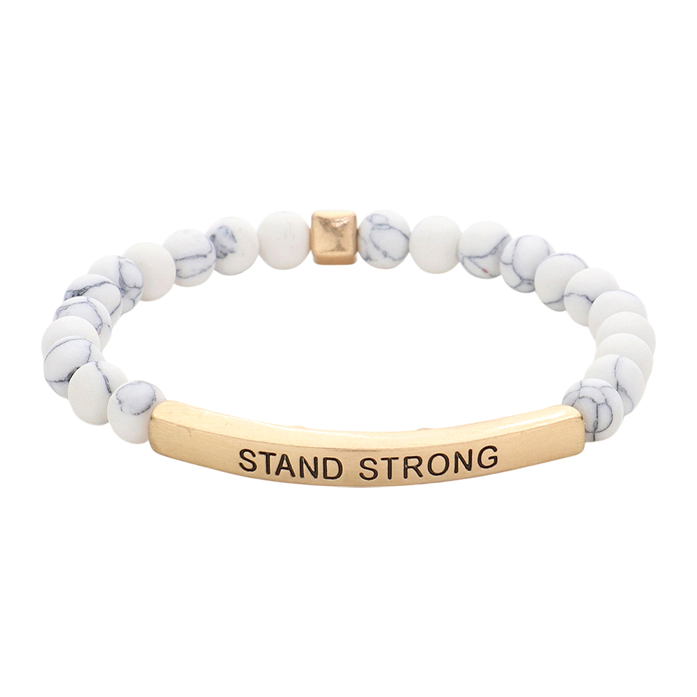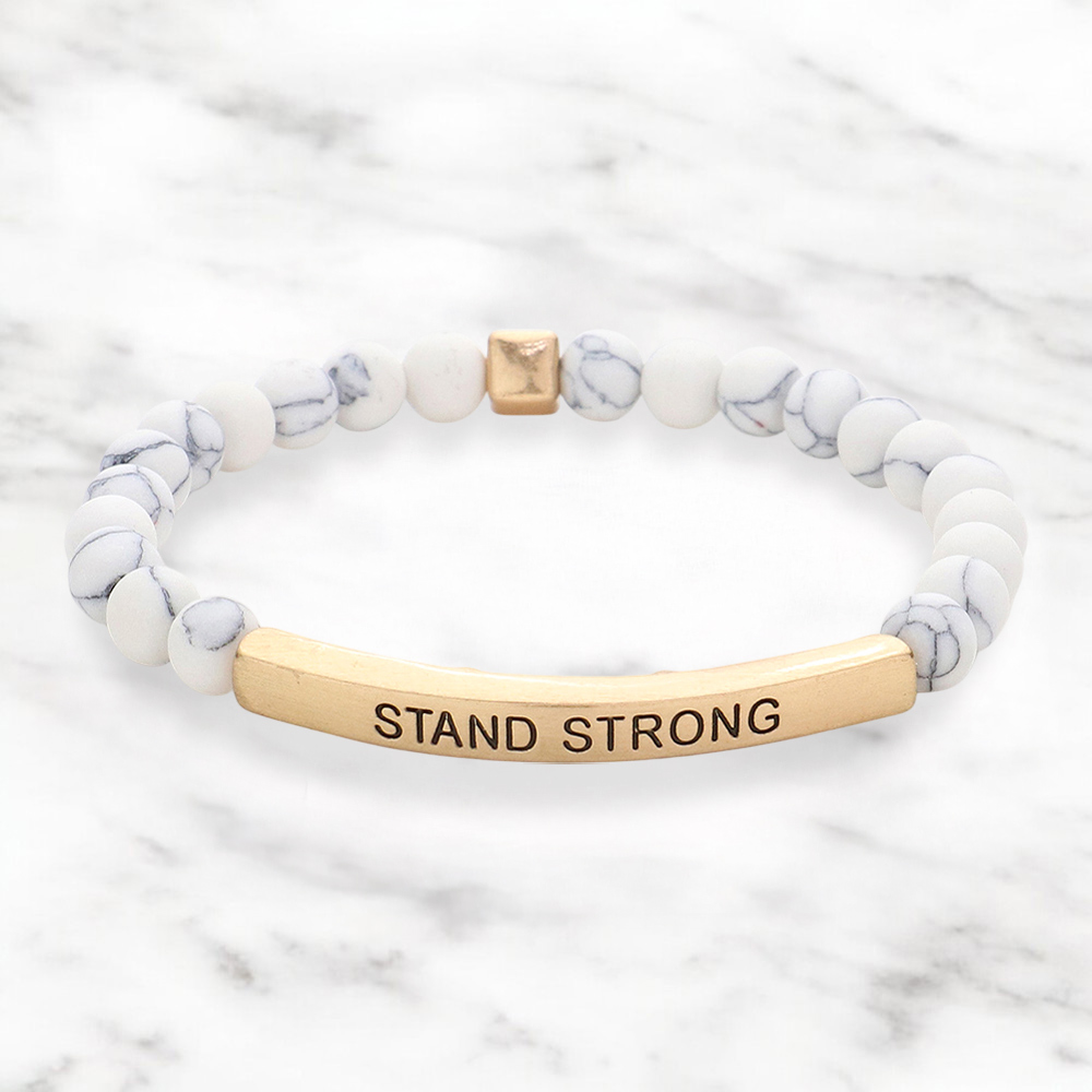 'Stay Strong' Horizontal Metal Bar Pendant Necklace