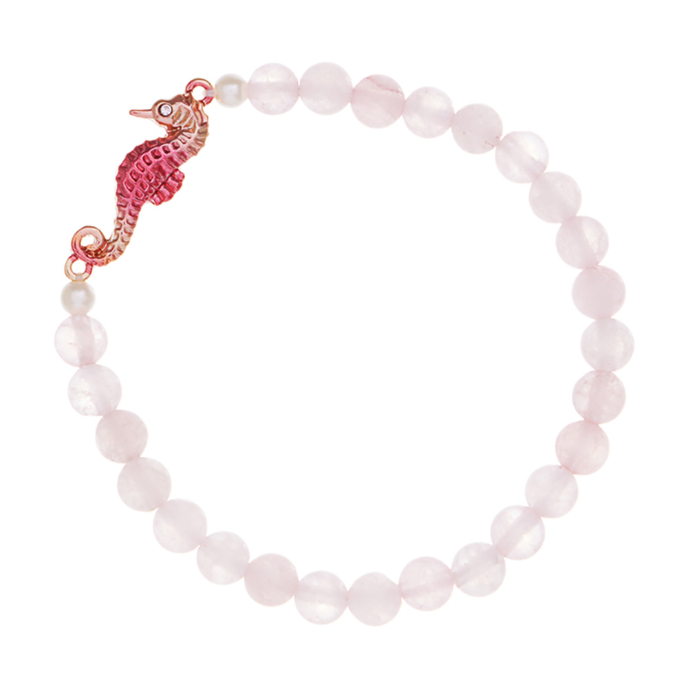Stone Paved Colored Metal Seahorse Faceted Stretch Bracelet