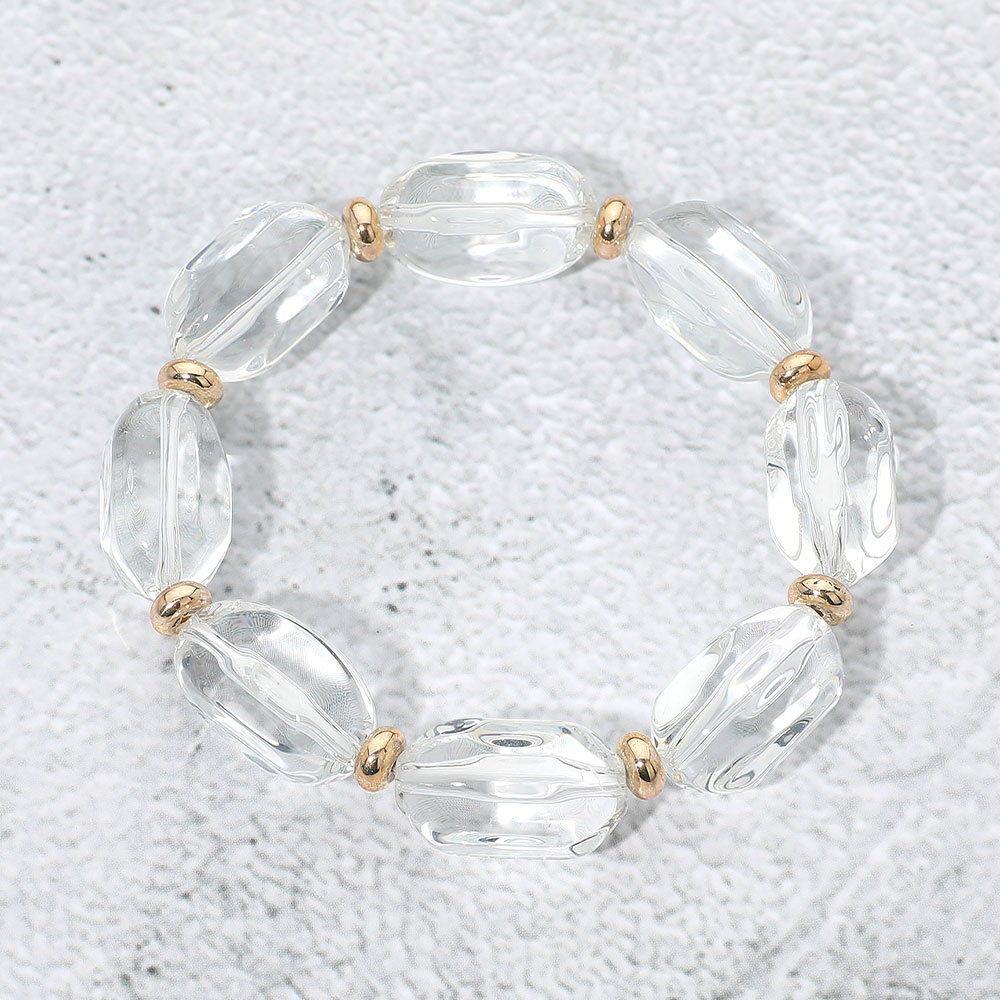 Transparent Faceted Pebble Beaded Stretch Bracelet Transparent Faceted Pebble Beaded Stretch Bracelet