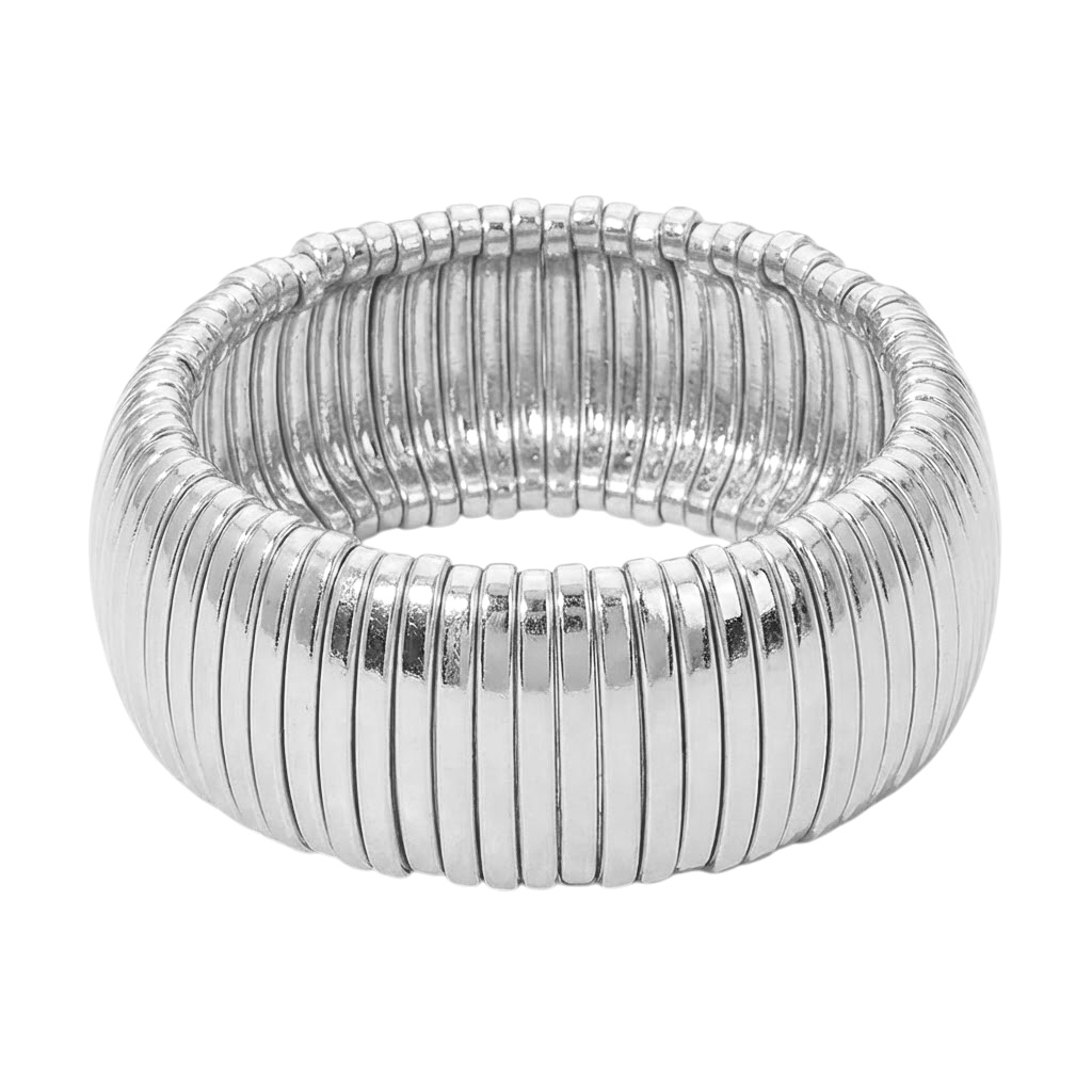 Wide Ribbed Metal Bar Stretch Bracelet Wide Ribbed Metal Bar Stretch Bracelet