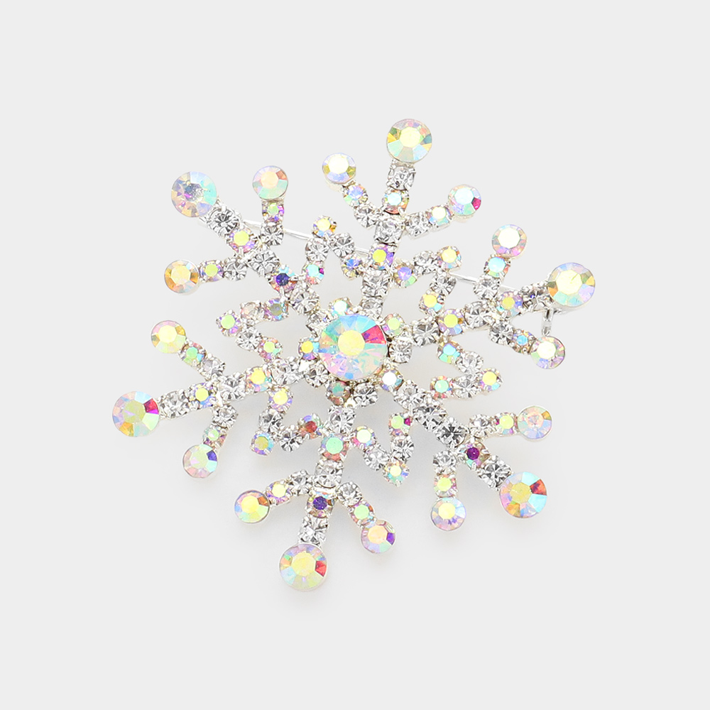 Details • Size : 1.5" X 1.75" • Pin Brooch • Elegant snowflake brooch pin adorned with sparkling rhinestones in a dazzling winter design. Perfect accessory for coats, scarves, and holiday outfits, adding festive sparkle and seasonal charm to any look. • Lead and Nickel Compliant