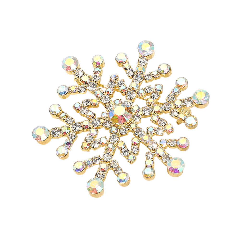 Details • Size : 1.5" X 1.75" • Pin Brooch • Elegant snowflake brooch pin adorned with sparkling rhinestones in a dazzling winter design. Perfect accessory for coats, scarves, and holiday outfits, adding festive sparkle and seasonal charm to any look. • Lead and Nickel Compliant