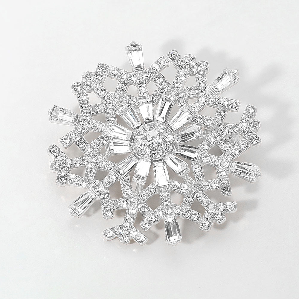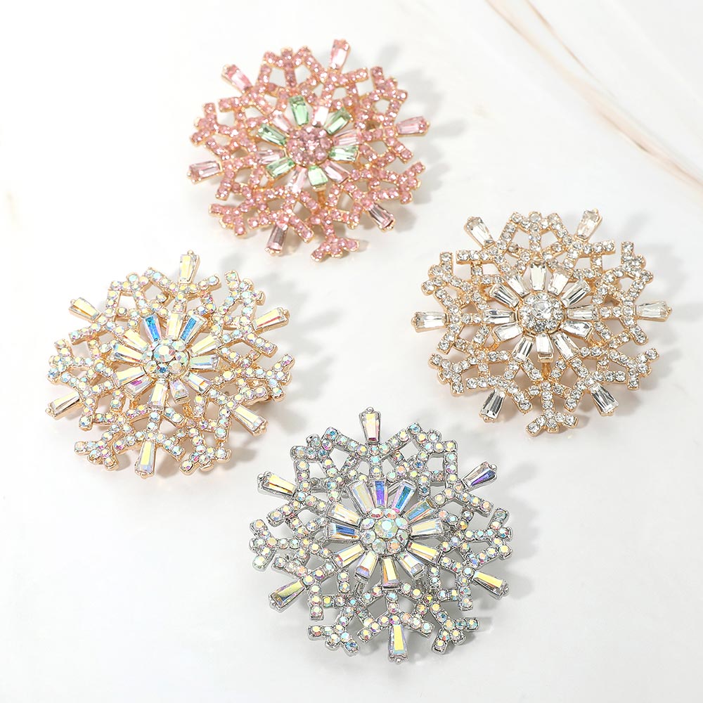 Details • Size : 2" X 2" • Pin Brooch • Shimmer in winter elegance with this snowflake brooch adorned with iridescent crystals and intricate detailing. A radiant accessory that captures light beautifully, perfect for festive outfits, seasonal events, or adding frosty sparkle to everyday looks. • Lead and Nickel Compliant