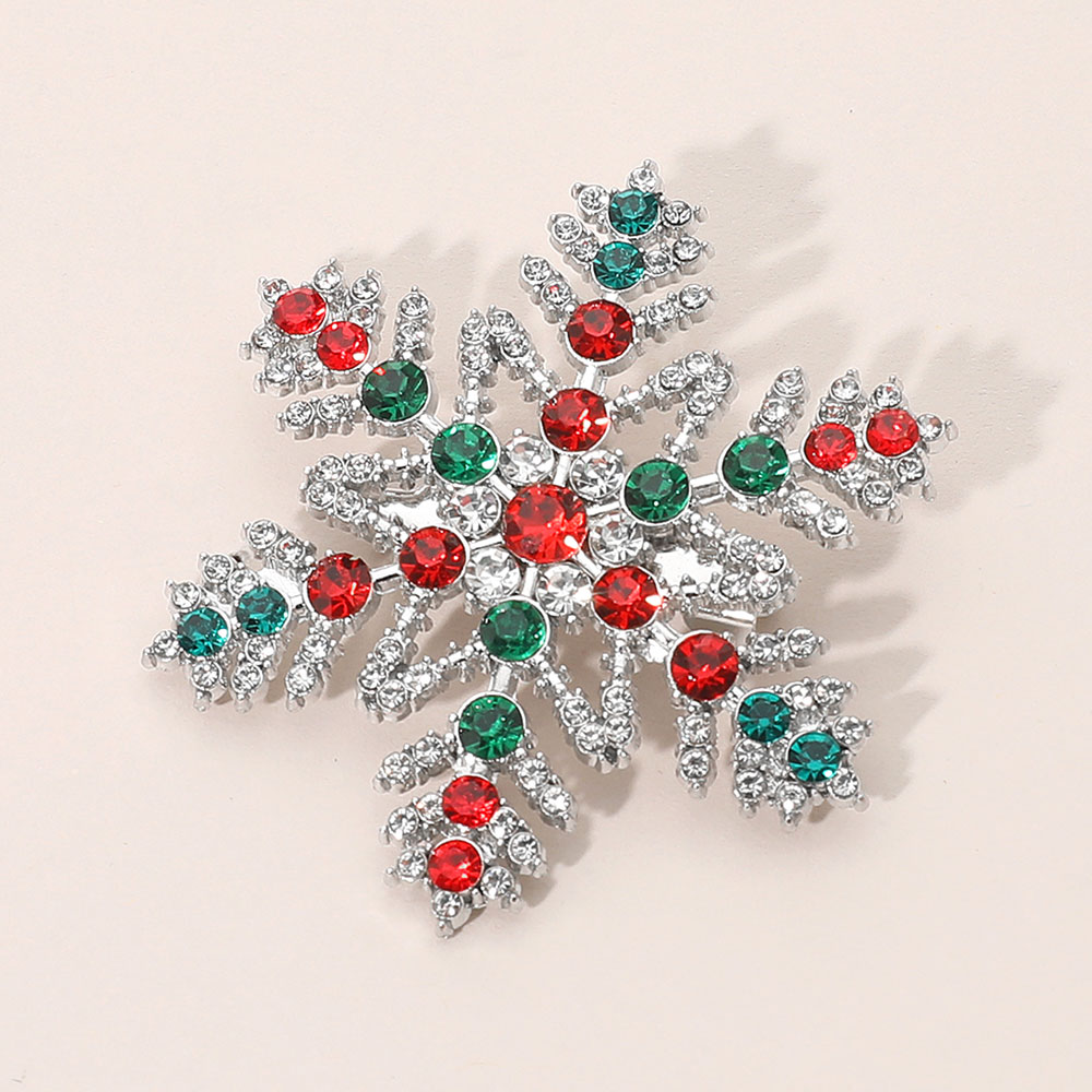 Details • Size : 2" X 1.75" • Pin Brooch • Detailed snowflake brooch with precisely arranged faceted accents forming a bold seasonal motif. Designed for easy styling on coats, scarves, hats, or bags, it offers eye-catching sparkle with lightweight comfort and a secure fit, perfect for holiday events, winter outfits, or thoughtful gifting. • Lead and Nickel Compliant