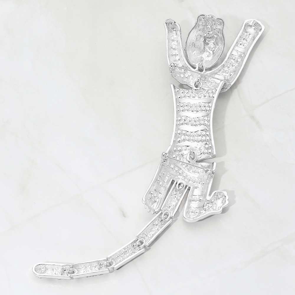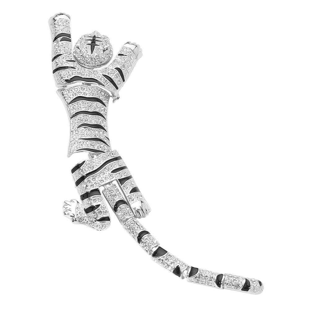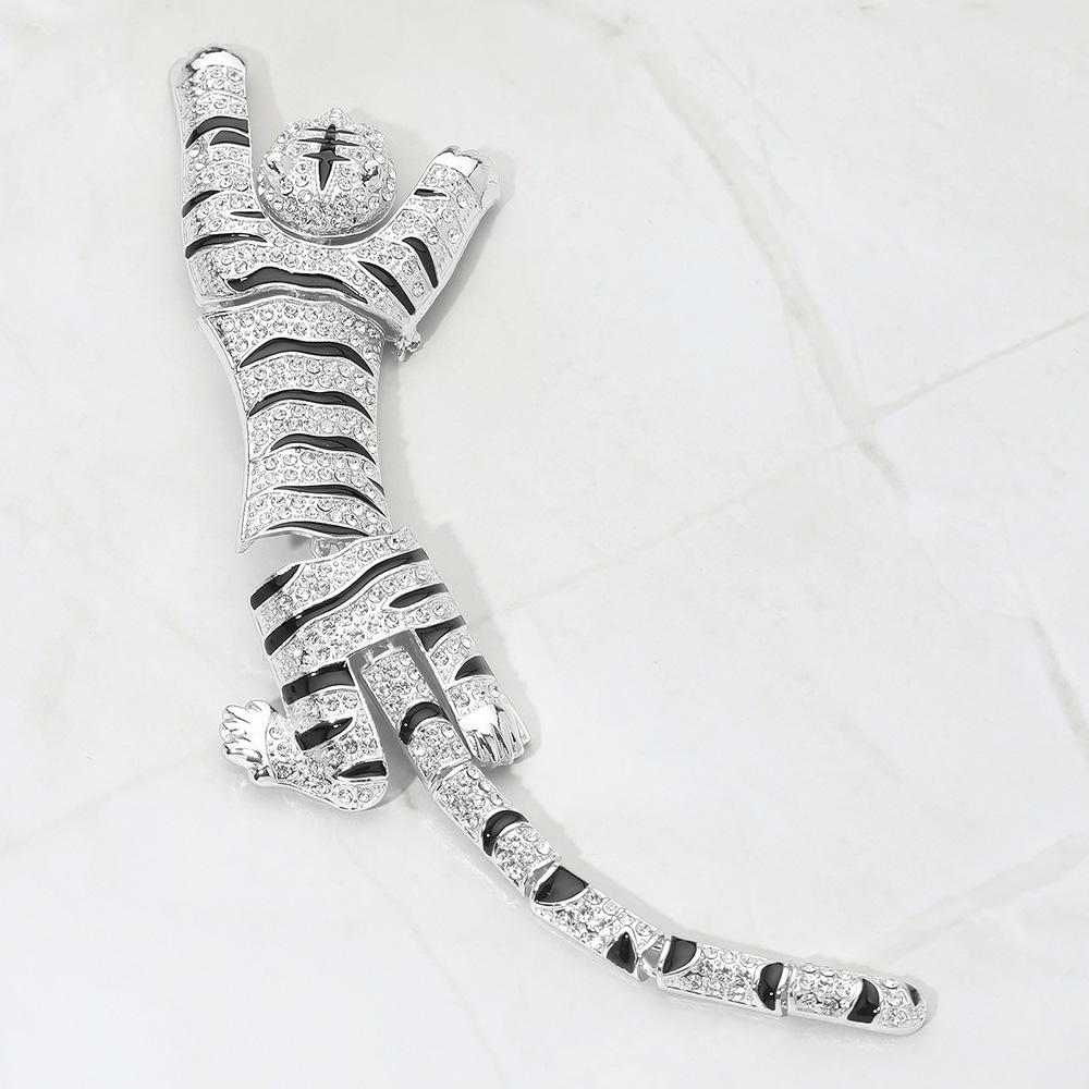 • Make a bold statement with this crystal tiger brooch featuring intricate detailing and sparkling accents. Its elegant design adds a fierce yet sophisticated touch to any outfit, perfect for accessorizing coats, scarves, or evening wear with timeless glamour.