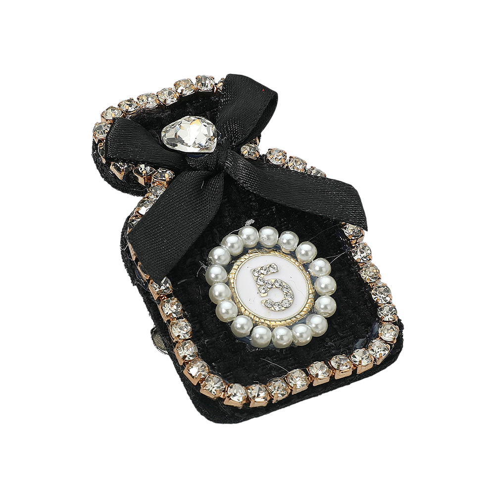 Bow Pearl Rim Number Five Accent Tweed Perfume Bottle Pin Brooch Hair Clip