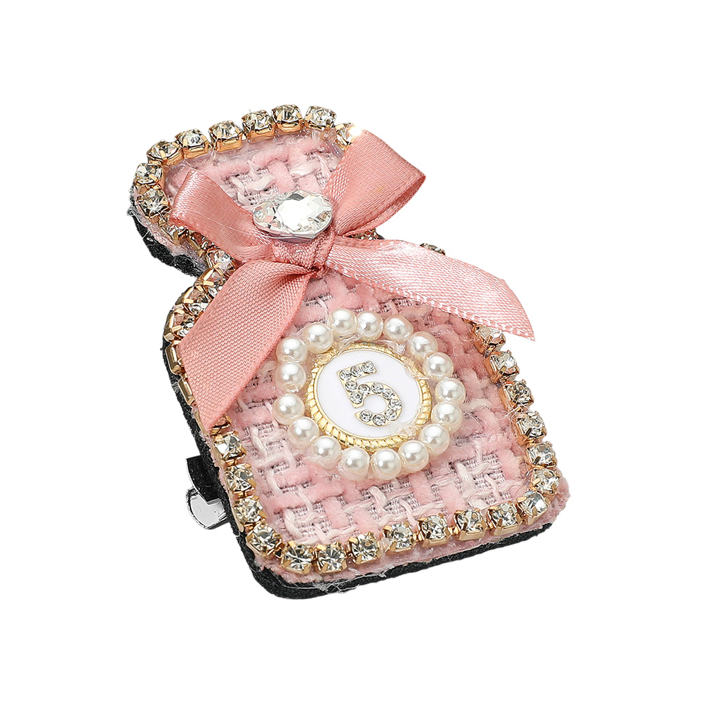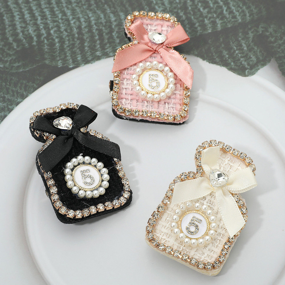 Bow Pearl Rim Number Five Accent Tweed Perfume Bottle Pin Brooch Hair Clip
