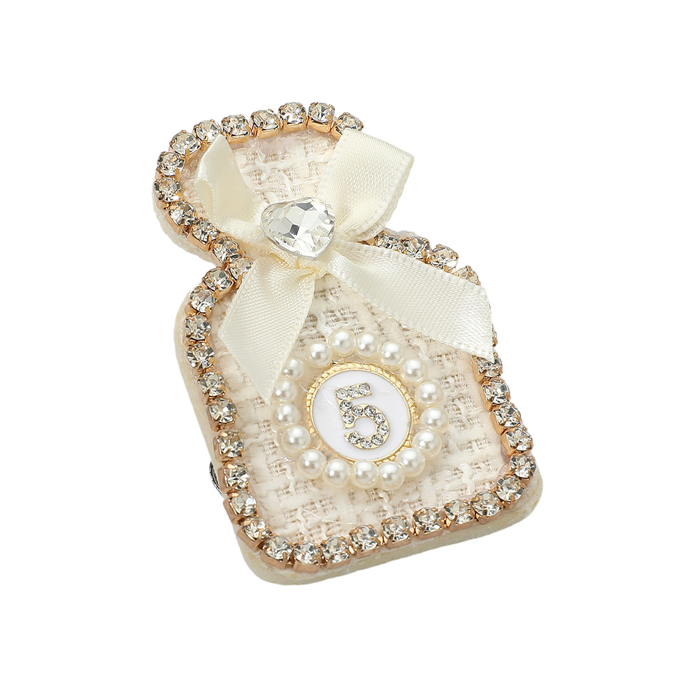 Bow Pearl Rim Number Five Accent Tweed Perfume Bottle Pin Brooch Hair Clip
