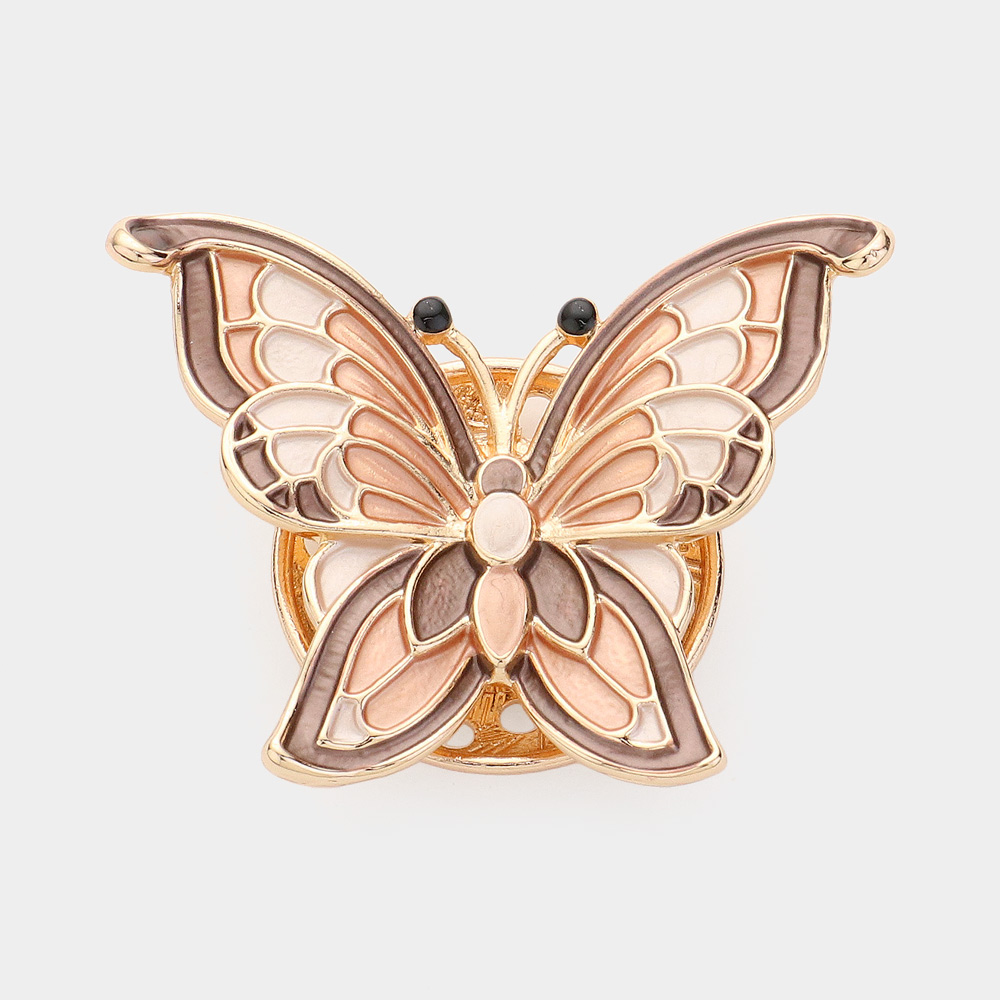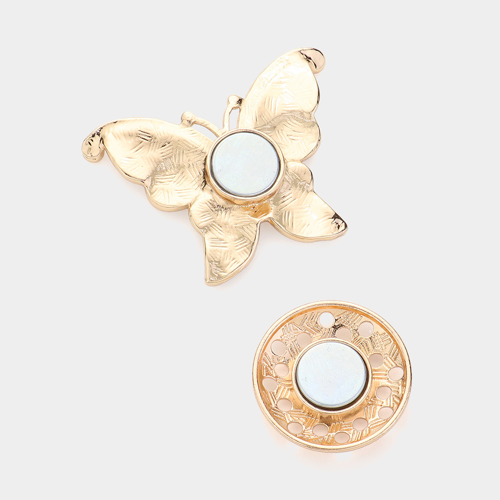 Antique Metal Abalone Pointed Butterfly Pendant Necklace
