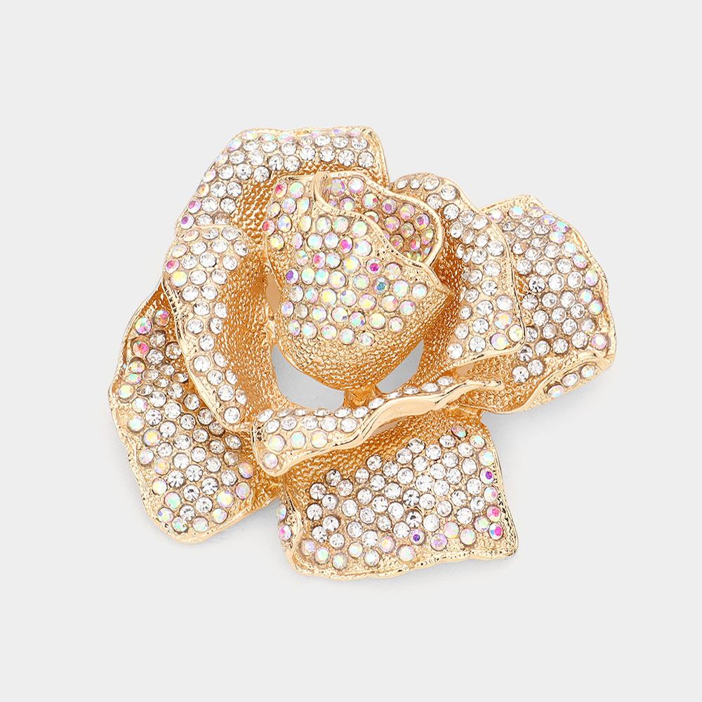 Glass Crystal Metal Flower Leaf Evening Bracelet